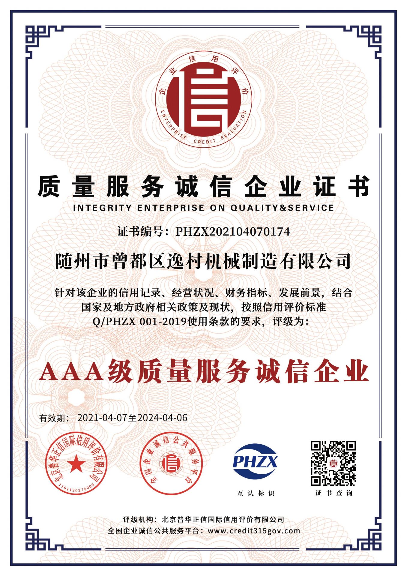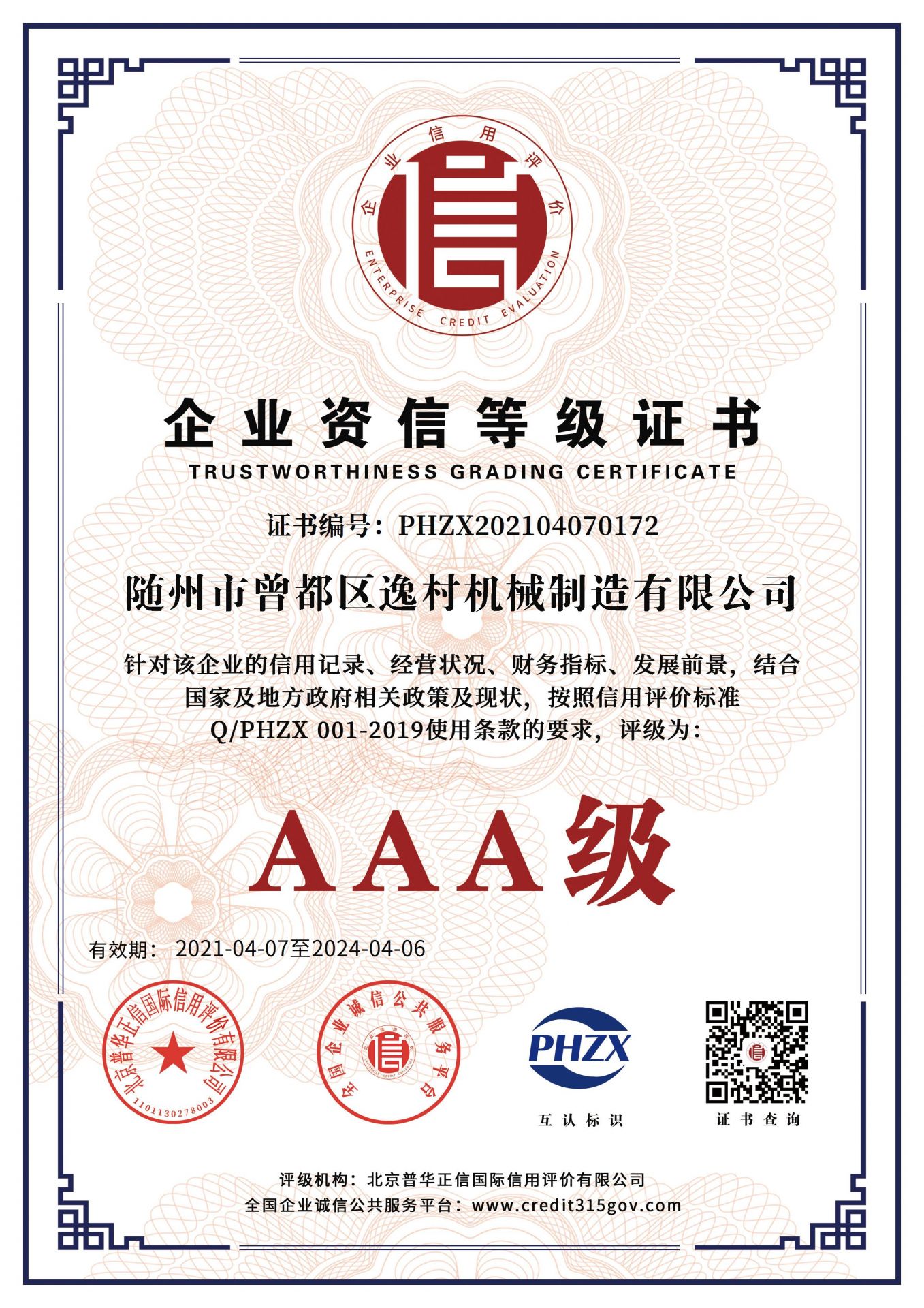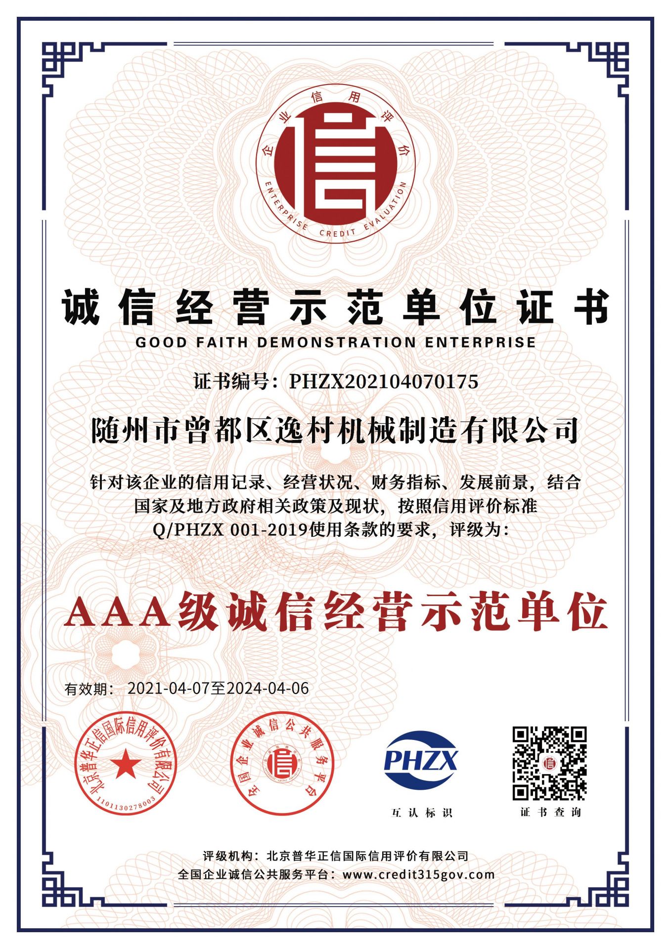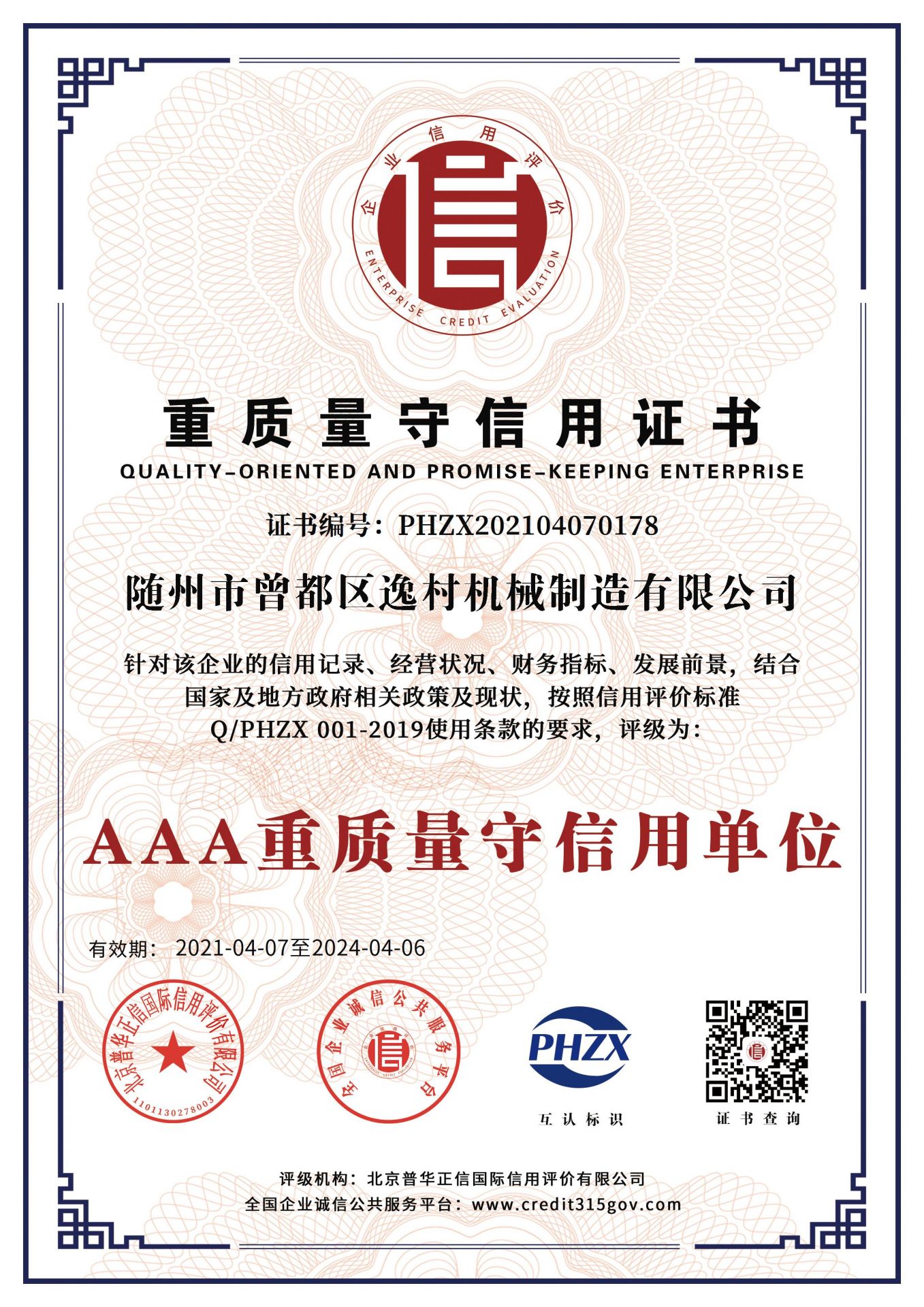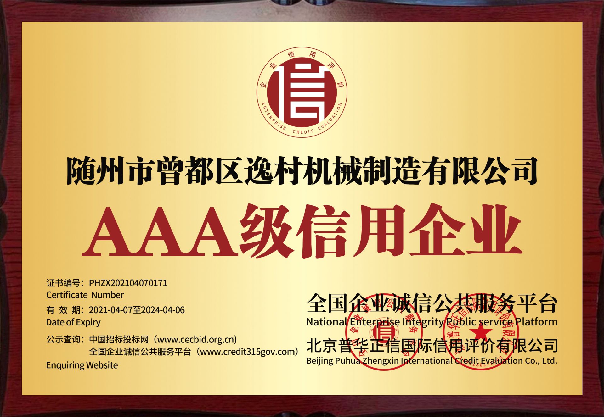 逸村AAA級(jí)信用企業(yè)